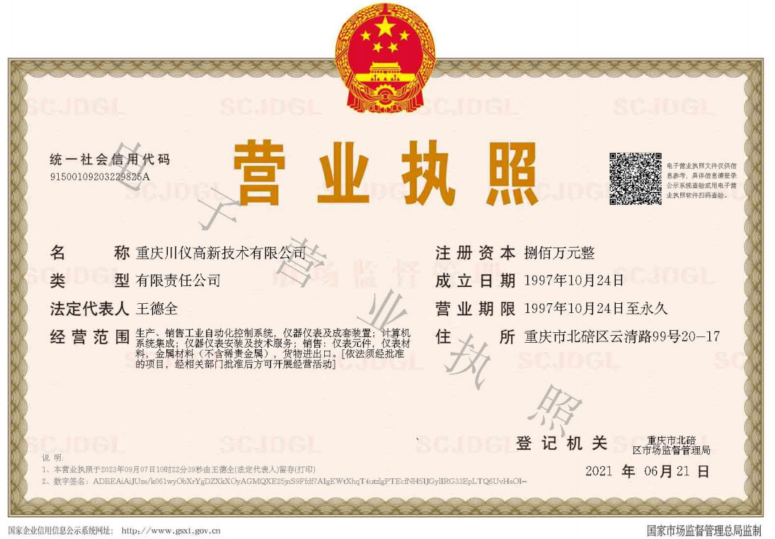 重慶川儀高新技術有限公司,公司成立于1997年10月,以自動化儀器儀表為基礎,看齊國際上自動化領域發展的新趨勢和新技術,薈萃高新技術的專業人才和業界精英,從事自動化領域新型系統設計、軟件開發應用、工程安裝調試、系統成套等。是中國著名的高科技企業,坐落在中國自動化儀器儀表基地之一的重慶市。